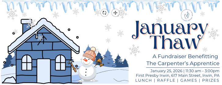 A fundraiser is being planned to help fund The Carpenter’s Apprentice’s “Spring Fix-Up” weekend. What better reason to have a party?!? We love our big celebrations here at First Presby Irwin. There will be a display by The Carpenter’s Apprentice and testimonials from those served during the “Fall Fix-Up” weekend. We will have spaghetti and meatballs, rolls, salad, and dessert. There will be face painting and several different chances to win a prize including a basket raffle, 50/50, and “Guess How Many” games. There will be an auction for a golf outing for 4. There will be chances to smash a car! If luck is on your side, you may even win the grand prize from the gracious owners of Iceburgh’s Bistro: 1 FREE salad each month for the next YEAR!! Tickets are available NOW at the Gift Card Desk in the Brenzia Room on Sundays or in the church office during the week: $10 for adults and $5 for kids under 12. You can participate by helping with setup, decoration, cooking, serving meals, or be part of the cleanup and tear down crew. Contact Lori Bertani 724-561-7341 or l.bertani@comcast.net or Heather Duckett 404-414-6794 or heather@firstpresbyirwin.org.